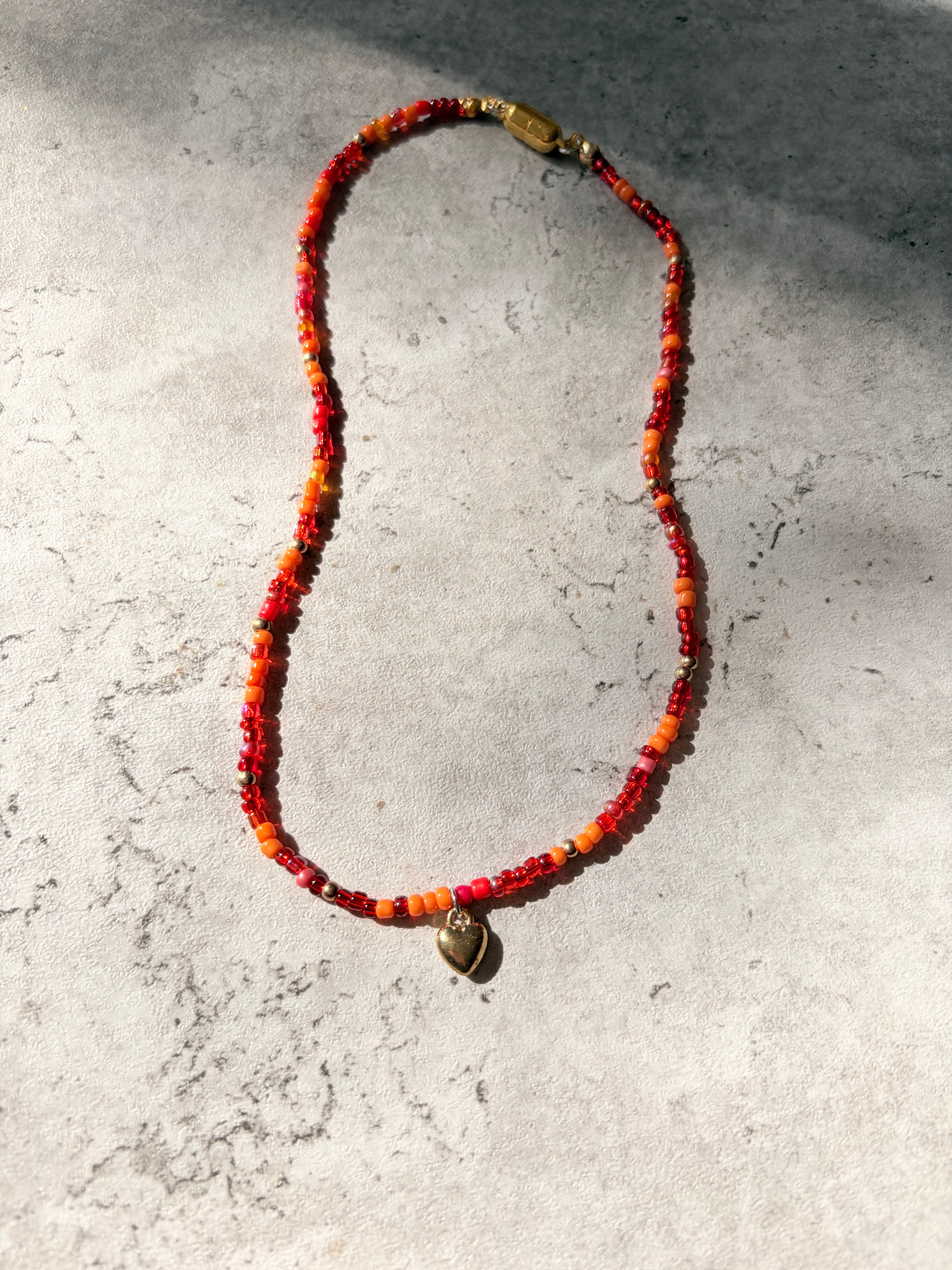 磁石でくっつくビーズネックレス【red】